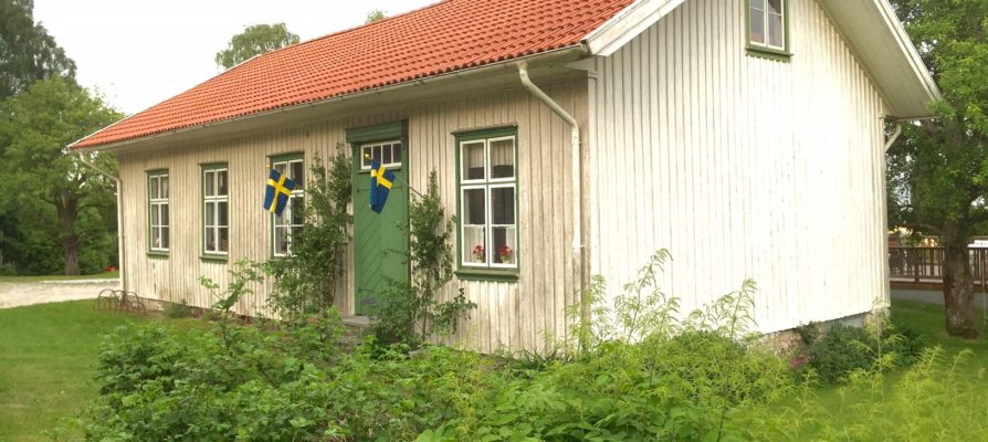 Skolbyggnad från 1875 med skolsal och lärarbostad om ett rum och kök. Läromedel från skolans början och framåt visas.